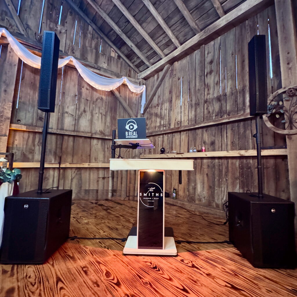 - Upgraded DJ Setup w/Natural Birchwood Podium or All Black Floor Standing Façade