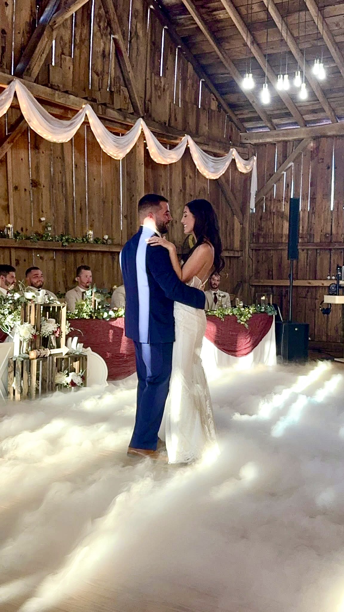 We use a combination of dry ice and hot water, which is 80-85 degrees celsius, in order to create our low-lying cloud effect. Our dry ice method creates a nimbus cloud, which lays low to the ground and evaporates within minutes after use. Standard fog machines involve heating up fog liquid to disperses a smokey haze in the room, which can affect the quality of the air that you and your guests are breathing and set off smoke alarms. Our fog machine will NOT set off smoke or fire alarms!
